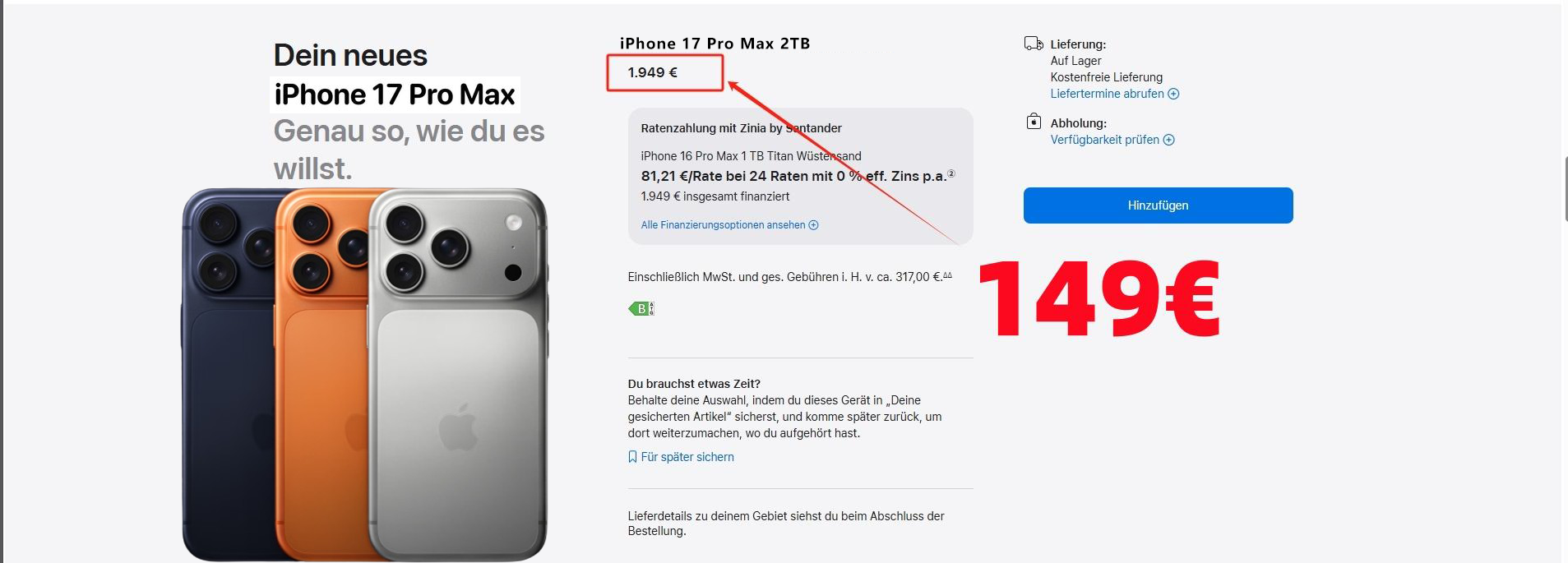 90 % Rabatt auf das iPhone 17 Pro Max, begrenzte Stückzahl verfügbar